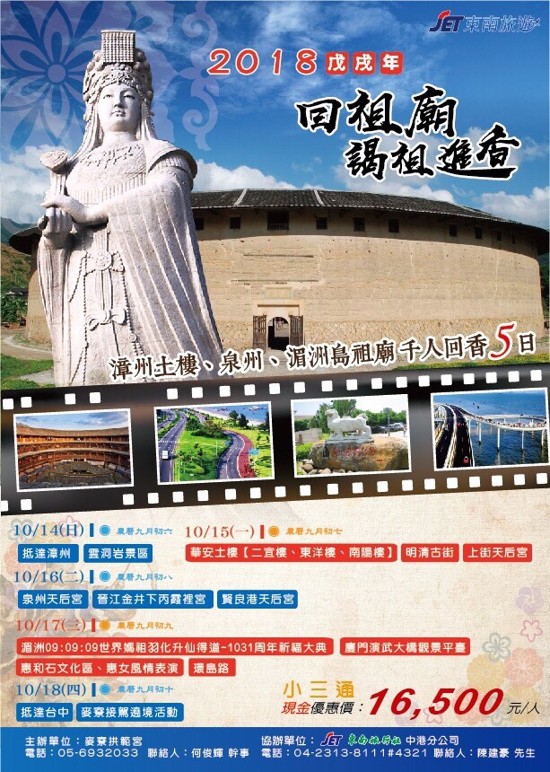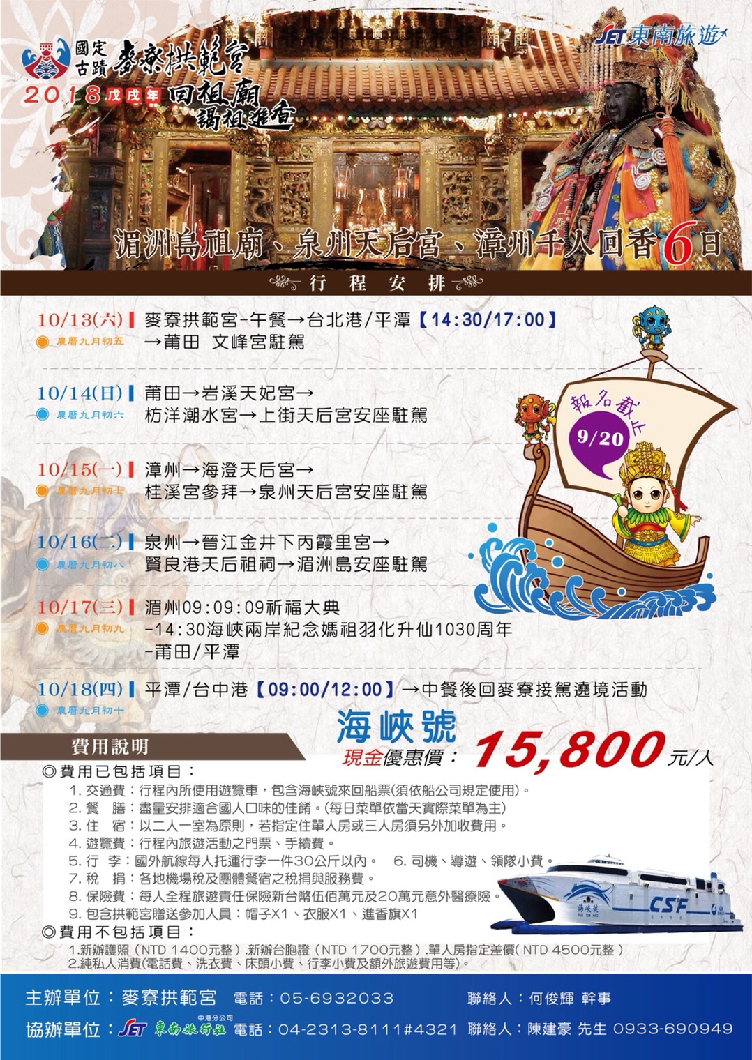 有相關問題歡迎洽詢麥寮拱範宮或東南旅行社