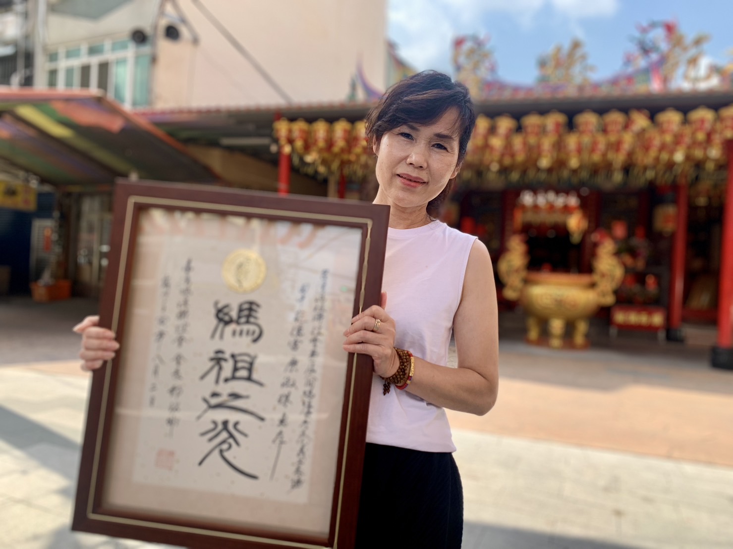 從小經過廟宇就會跟著大人拜拜,遇到事情就會跟媽祖報備或請示,一路走來媽祖就像是自己的「心靈燈塔」,阿嬤90多歲離世那一年,家中請來誦經團幫忙助念誦經,她對誦經團的莊嚴留下深刻印象,心中暗自許諾「退休後有機會一定要學誦經,跟師兄師姐們一樣幫助更多人」,這個意念,開啟了她與媽祖至今16年的緣分。